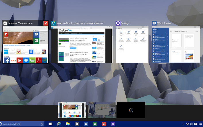 Если вам нужен способ управления отдельными областями для просмотра веб-страниц, создания таблиц и редактирования изображений, это идеальный вариант. Нажмите на значок креста рядом с любой миниатюрой виртуального рабочего стола в представлении задач, чтобы закрыть его.