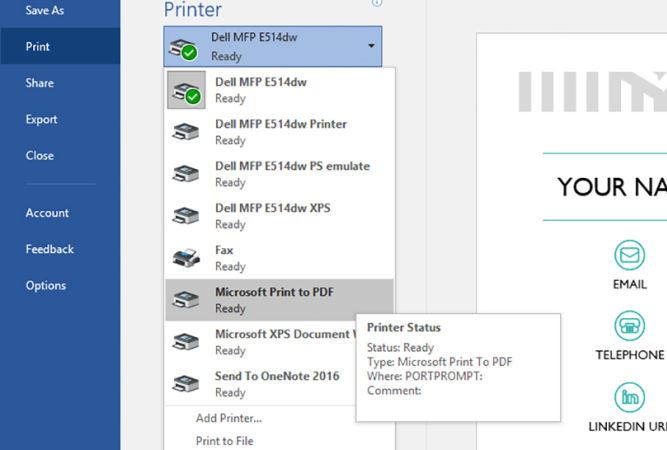 К счастью, Windows 10 добавляет встроенную поддержку экспорта PDF, поэтому вам не нужно устанавливать какие-либо другие сторонние инструменты для выполнения этой работы. Параметр «Печать в PDF» отображается в списке принтеров в любой программе, из которой вы пытаетесь вывести файл.