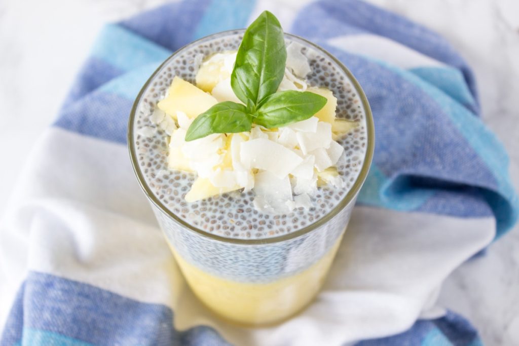 Смешайте кокосовое молоко, кленовый сироп, воду, кардамон ваниль и соль. Добавьте семена чиа и нарезанные фрукты.