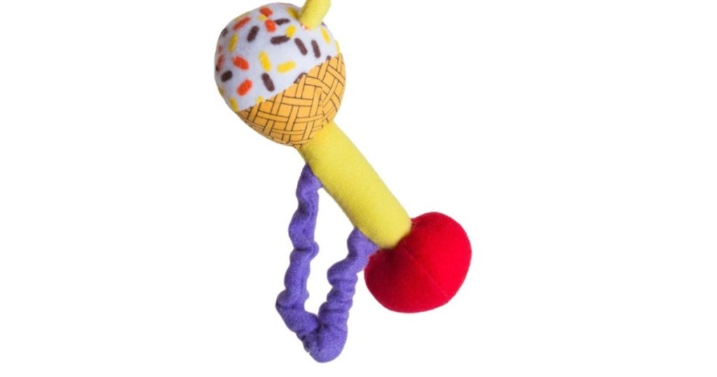 Эту игрушку можно нацепить малышу на руку, и вам не придется наклоняться за ней каждую минуту — ребенок просто не сможет выбросить ее из коляски или кроватки.