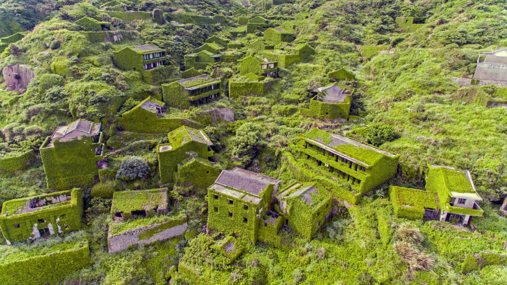 Небольшая рыбацкая деревня Хутууван на китайском острове Шэншань была брошена жителями еще в 1900-х годах. Сейчас она примечательна тем, что практически полностью покрылась растительностью.