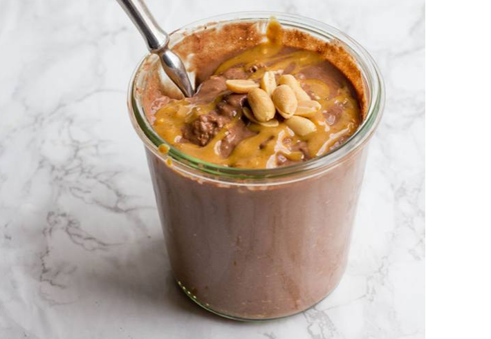 Цей сніданок з вівсянки не потрібно варити, він настоюється з фруктами, сиропами, йогуртом та арахісовою пастою. Не хвилюйтесь за калорійність, адже шоколадного смаку до цього рецепту додає ложка какао. А підсолоджувати його можна як і арахісовою пастою, так і кленовим сиропом чи медом.