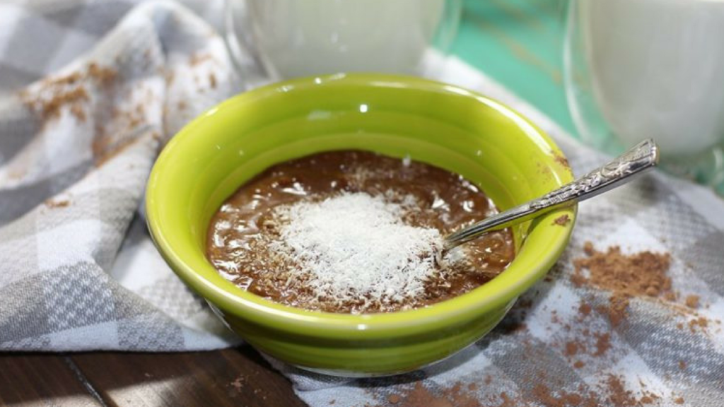Вегетарианский шоколадный пудинг с бананами, порошкообразным несладким арахисовым маслом и кокосом подарит вам ощущение сытости без лишних калорий.