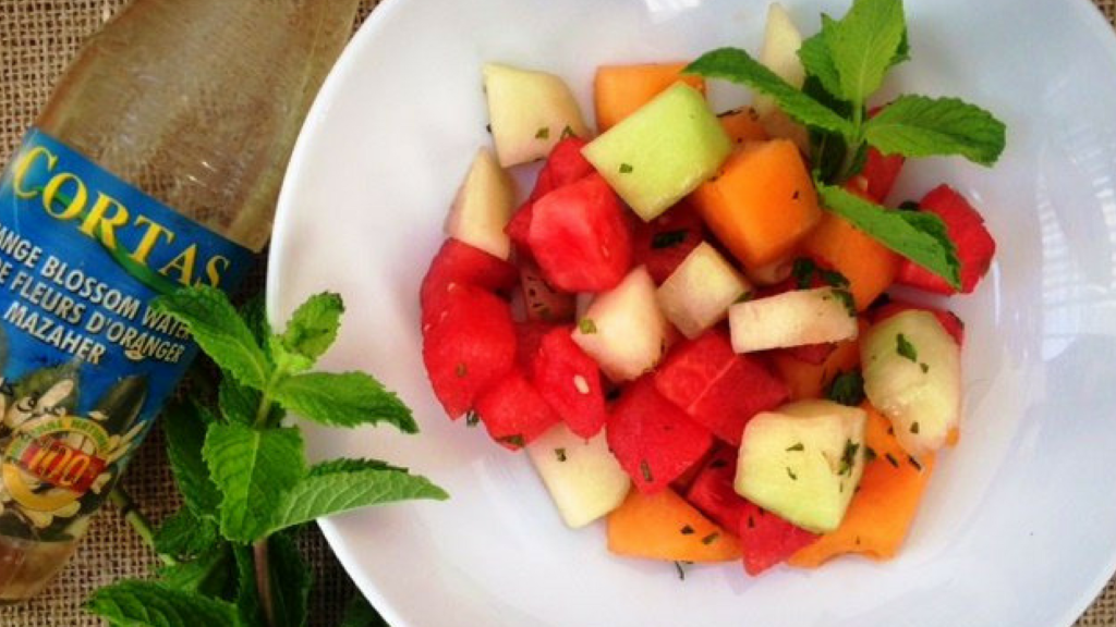 Фруктовый салат с дыней, ягодами, арбузом и мятой станет прекрасным и легким освежающим блюдом!