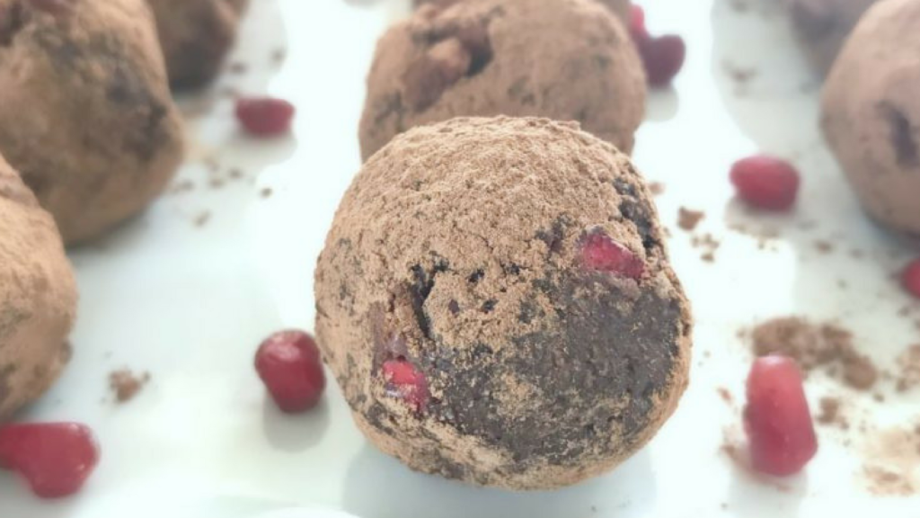 Эти шоколадно-гранатовые трюфели – здоровый способ добавить в рацион немного шоколада. Финики, какао и орехи добавляют им хруста и, конечно же, удовольствия!