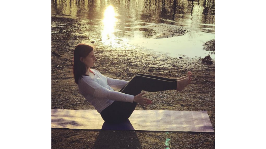 Для этой позы сядьте на землю с выпрямленными ногами, затем согните их в коленях и слегка поднимите в воздух. Протяните руки прямо возле ног и удерживайте эту позу в течение нескольких секунд.