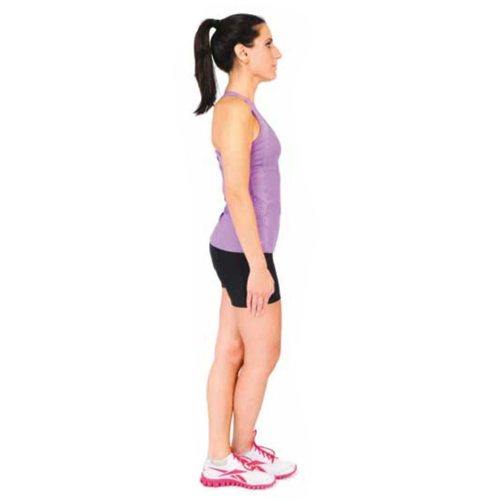 Встаньте прямо, поставьте ноги на ширину плеч, руки держите вдоль корпуса. Выполняйте наклоны корпусом вперед, не сгибая колени. Руками тянитесь к носкам. Задержитесь в этом положении на несколько секунд, затем вернитесь в исходную позицию и повторите еще 3 раза.