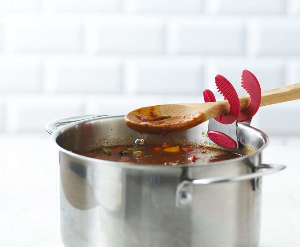 Этот держатель можно прикрепить к кастрюле, и во время готовки вы будете знать, куда деть ложку. Изделие устойчиво к воздействию высоких температур, и его можно мыть в посудомоечной машинке.