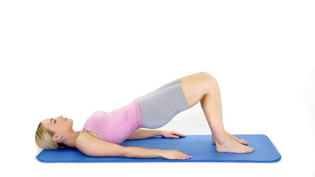 Лягте на спину и расставьте ноги шире, чем ширина ваших плеч, согнув их в коленях. Теперь поднимите бедра, чтобы они оказались на одной линии с плечами и коленями. Зафиксируйте позицию и вернитесь в исходное положение. Выполните 20 повторений.