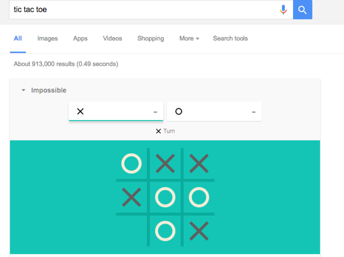 2. Наберите в поиске «tic tac toe» и вы сможете сыграть в крестики-нолики.