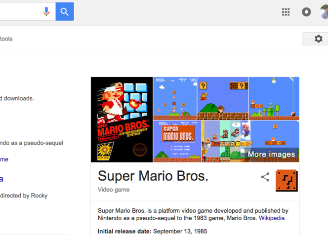11. Если вы поищите «Super Mario Bros», возле картинок игры Супер Марио будет пиктограмма «?». Нажмите на нее, и вы услышите звук монет, который выслышали в оригинальных играх.