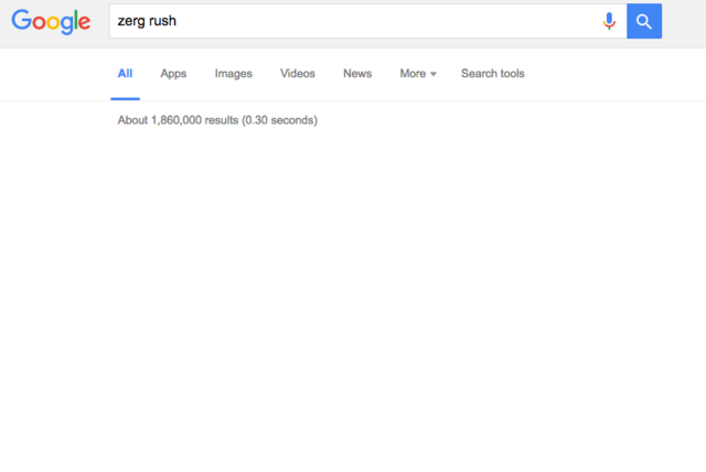 12. Поищите «zerg rush» в Google и вы увидите, как поток символов постепенно «съест» ваши результаты. Это ссылка на тип атаки в популярной серии стратегической игры «StarCraft».