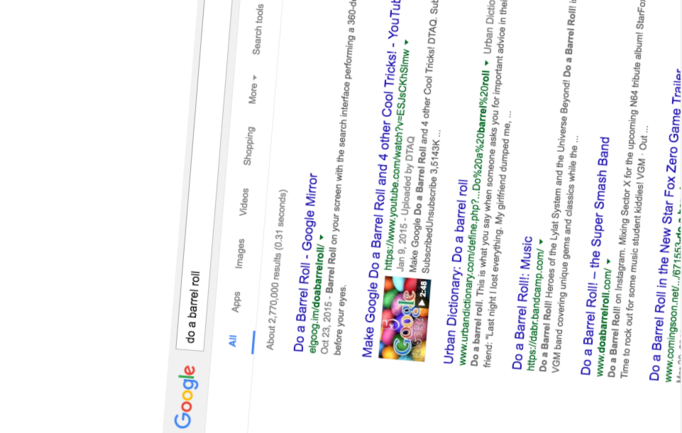 13. Поиск фразы «do a barrel roll» перевернет вашу страничку результатов на 360 градусов.