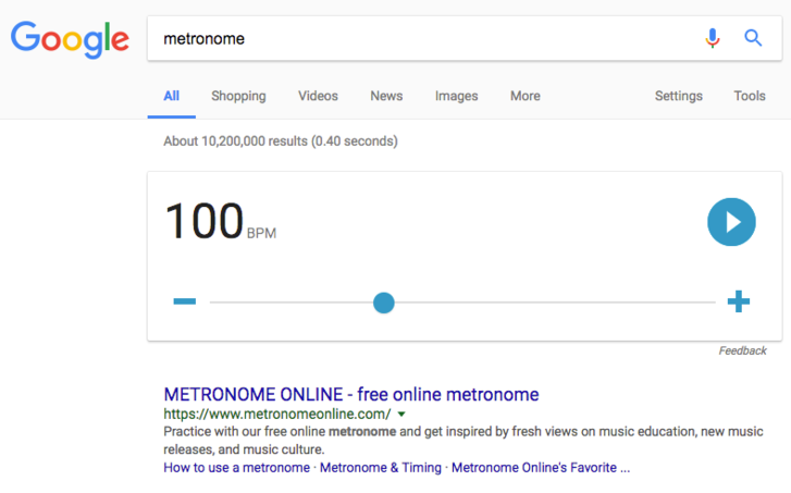17. Google добавил инструмент для музыкантов. Просто введите «metronomе», затем настройте BPM для своей музыки.