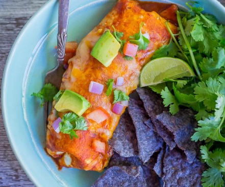 Предварительно нагрейте духовку до 220 градусов. Добавьте оливковое масло на сковороду и поджарьте лук, красный перец, кабачки, добавьте соль, перец и специи. Готовить в течение 7 минут, а затем добавить капусту и тушить еще 2 минуты. Налейте 1 чашку соуса в форму для запекания. Положите 1/3 чашки пережаренных бобов в середину вашей тортильи и сверху посыпьте сыром, добавьте овощную смесь, заверните тортилью. Все лепешки заверните, уложите в форму для выпекания. Полейте оставшимся соусом. Испеките буррито в течение 15-20 минут.