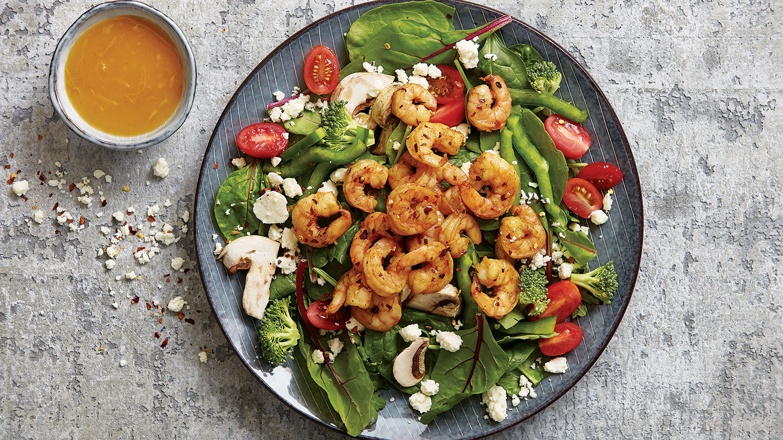 Салат с креветками и перцем чили