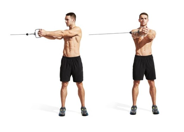 Установите регулируемый кабельный шкив на уровень плеч (или прикрепите эспандер к прочному объекту) и возьмитесь за рукоятку обеими руками. Встаньте ноги на ширине плеч, перпендикулярно к опорной точке, станьте достаточно далеко, чтобы ваши руки были вытянутыми и вы чувствовали напряжение в кабеле. Отклонитесь от тренажера влево, как будто вы рубите в дерево, при этом держите ноги неподвижными. Встаньте в исходное положение. Отклонитесь в другую сторону.