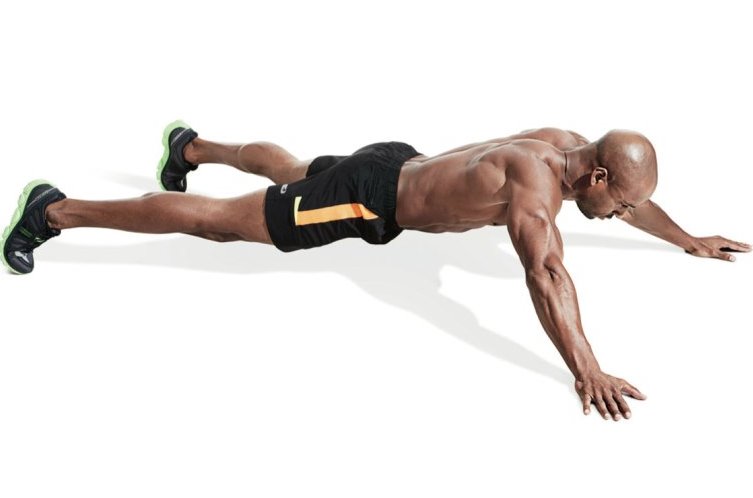 Встаньте в положение отжимания. Расставьте руки и ноги как можно шире — ваше тело примет форму звезды. Задержитесь в этой позиции с напряжённым торсом прямо и в течение 30 секунд.