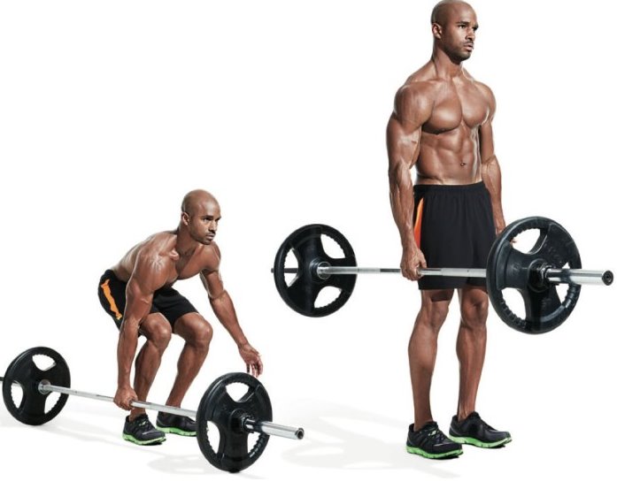 Положите штангу на пол и встаньте слева от нее, поставив ноги на ширину плеч. Медленно приседайте, пока вы не сможете схватить штангу правой рукой по центру. Потом напрягите пресс и старайтесь держать спину ровной, и при этом выпрямляйтесь. Сосредоточьтесь на том, чтобы держать спину ровной все упражнение — не наклоняйтесь вбок по направлению к штанге.