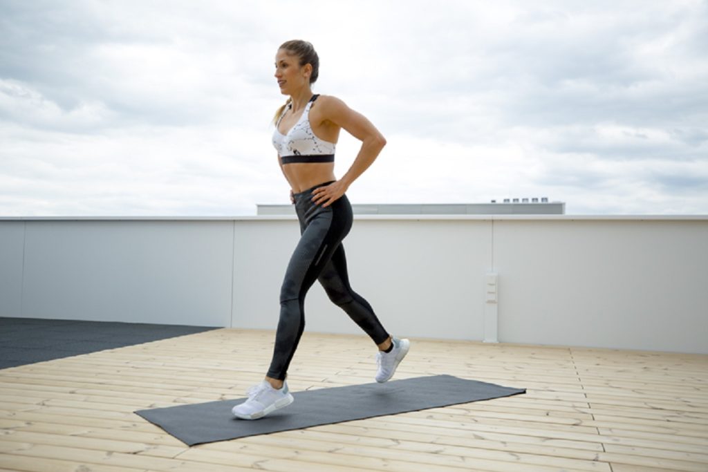 - Делайте выпады назад. Из прямого стоячего положения делайте выпад назад одной ногой. Причем спереди стоящее колено должно сгибаться ровно на 90 градусов и не «отходить» вперед. Выполняй по 20 раз для каждой ноги, делая перерыв не более, чем на 40 секунд между следующим подходом.