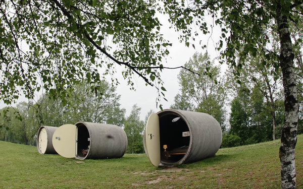 В Dasparkhotel в Оттенсхайме, Австрии, гости могут остановиться в номерах, построенных из переработанных бетонных водосточных труб. В отеле действует политика «заплатить сколько хочешь». В номерах есть двуспальная кровать, место для хранения личных вещей, электричество, но гости должны пользоваться общественными санузлами.