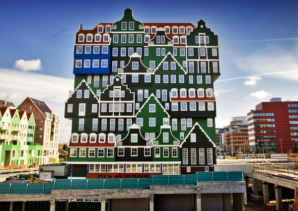 Zaandam, город, расположенный к северу от Амстердама, может похвастаться очень уникальным отелем с фасадом, который за легендой состоит из традиционных домов, уложенных друг на друга. Неудивительно, что снимки Inntel Hotels Amsterdam Zaandam очень часто появляются в Instagram.
