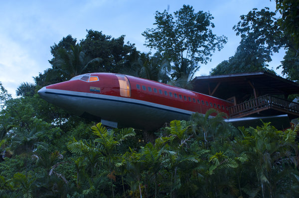 Отель Costa Verde в Национальном парке Мануэля Антонио в Коста-Рике располагается в фюзеляже старинного болгарского самолета 1965 года. С отеля открывается потрясающий вид на тропический лес.