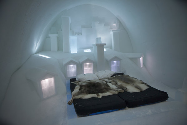 Каждый год Icehotel строят в деревне Юккасъярви в Лапландии, Швеции. В отеле есть тематические апартаменты с впечатляющей резьбой по льду.