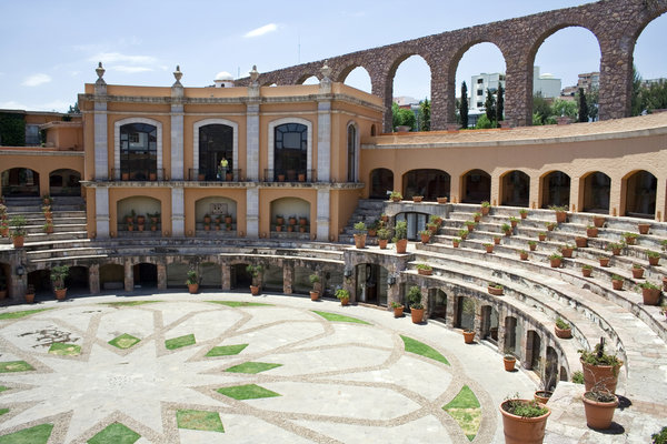 Quinta Real в Сакатекасе, Мексике, был построен вокруг отреставрированной арены для кориды 19-го века. Гости останавливаются в номерах вокруг старой арены.
