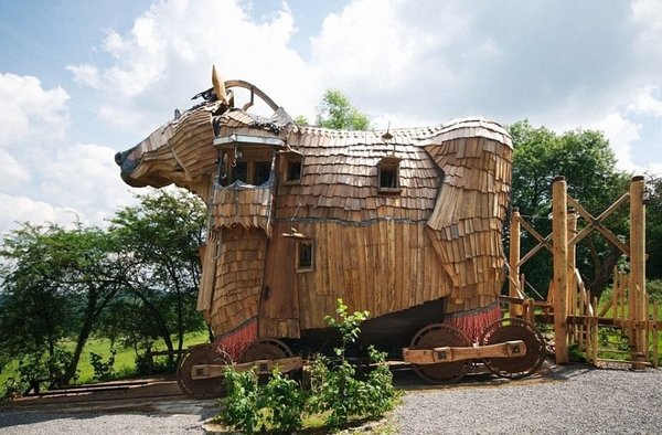 В отеле La Balade des Gnomes в Гейде, Бельгии, есть номера в стиле «Троянский конь» и номера, оформленные со сказочной обстановкой.