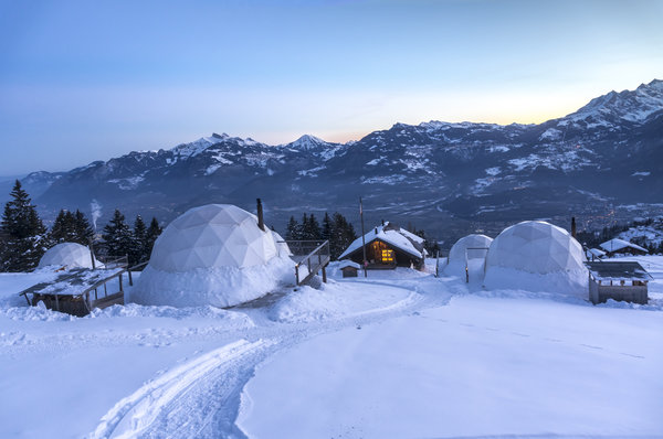 Whitepod – это роскошный эко-отель, состоящий из высокотехнологичных номеров в швейцарских Альпах. Возле каждого номера есть деревянные площадки, с которых открывается потрясающий вид на горы и Женевское озеро.