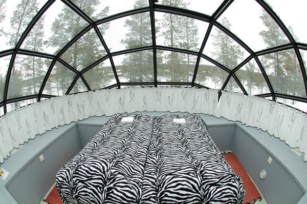 Отель Kakslauttanen находится в Саарисельке на севере Финляндии. К услугам гостей предлагаются стеклянное жилище иглу, в котором открывается захватывающий вид на северное сияние.