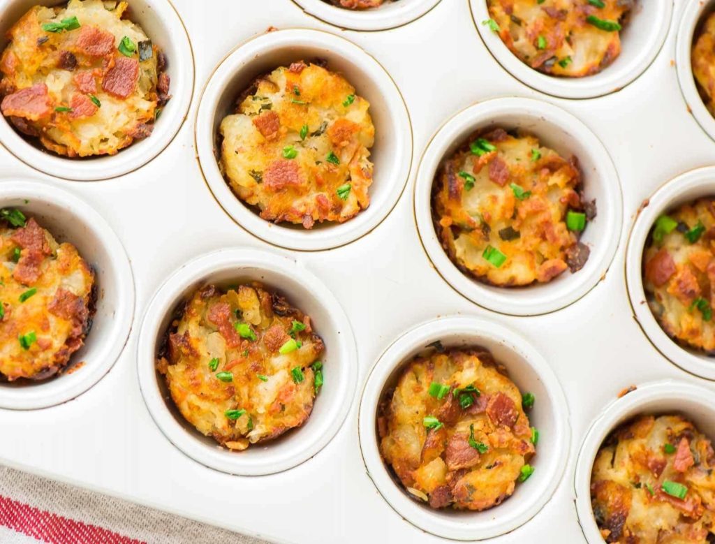 Разогрейте духовку до 200 градусов по Цельсию. Очистите картофель и вырежьте у него сердцевины. Поместите картофель на большой противень и вылейте туда холодную воду, пока она не достигнет глубины в 1 см. Кипятите на среднем огне 6 минут (картофель должен быть приготовлен примерно наполовину). Слейте воду и отставьте в сторону на 15 минут. Затем смешайте все остальные ингредиенты, потрите сверху сыром и поставьте в духовку на 5-10 минут. Дайте остыть и подавайте.