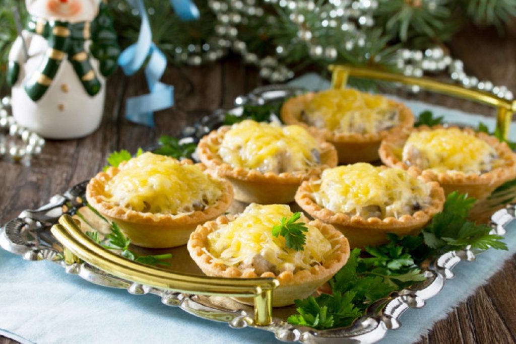 Мясо промыть и нарезать кубиками, обжарить на сковороде вместе с майонезом. Очистите картофель от кожуры, натрите на терке, смешайте с курицей, нарезанными оливками и чесноком. Протушите на сковороде еще несколько минут. Сформируйте шарики и выложите в песочные тарталетки, которые предварительно размещены на форме. Отправьте все в духовку, разогретую до 200 градусов. Готовить 20-25 минут.
