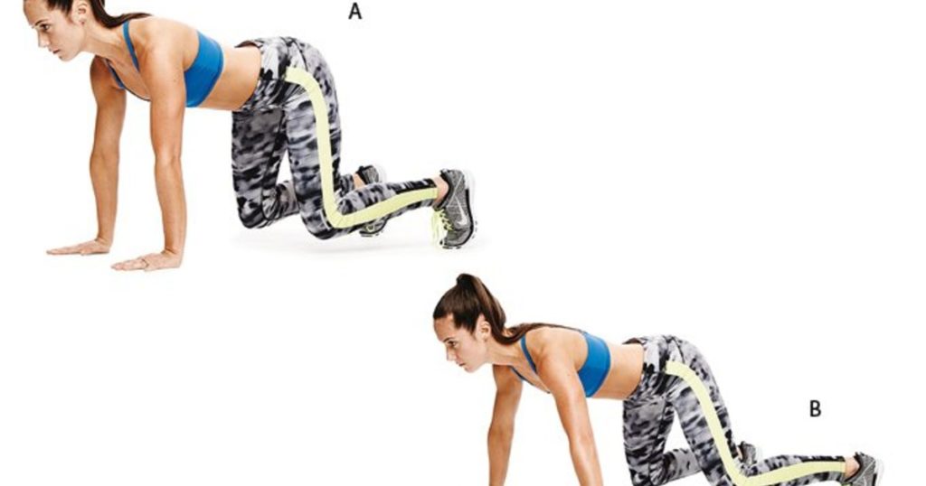 Станьте на четвереньки. Теперь оторвите от пола колени, перенеся упор на носки. Переставив в сторону правую ладонь и правую стопу, а вслед за ними левую ладонь и левую стопу, двигайтесь вправо. Затем, выполняя аналогичные движения, двигайтесь влево.