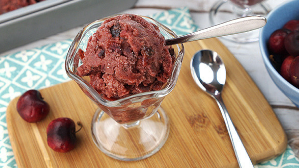 Нарежьте бананы на мелкие куски, положите в воздухонепроницаемый контейнер и поместите в морозильную камеру на 2-8 часов. В кухонном комбайне или блендере взбейте банановые кусочки и 1 чашку вишни. Если смесь кажется слишком густой, добавьте немного миндального молока. В конце добавьте оставшуюся часть вишни и шоколад. Включите блендер еще на один или два импульса, чтобы слегка измельчить вишни. Подавайте сразу же, если вам нравится мягкое мороженое, или переложите в герметичный контейнер и замораживайте до твердого состояния.