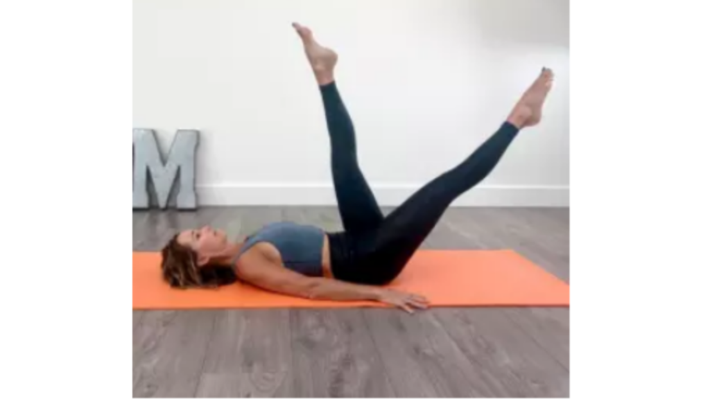 Ложитесь на спину, согнув колени и поставив стопы на пол. Попытайтесь достичь осевого удлинения – вытянитесь так, чтобы между вашими позвонками было как можно больше пространства. Постарайтесь прикоснуться к полу все телом. В таком положении поднимите ноги, выпрямите их, затем начинайте поочередно поднимать их и опускать. Повторите по 15 раз для каждой ноги.