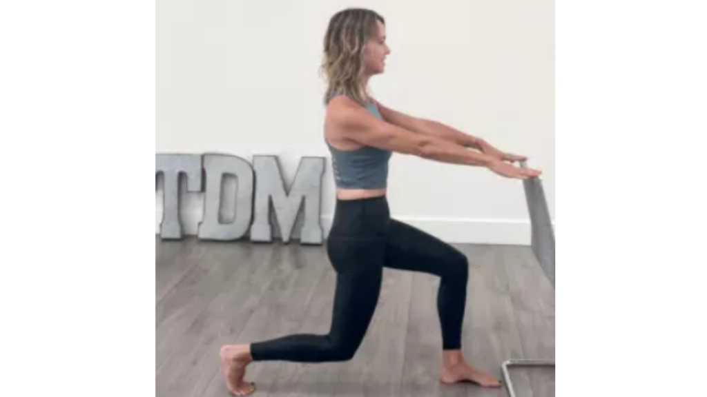 Станьте ровно, сделайте выпад вперед на одну ногу, при этом оба ваших коленных сустава должны располагаться под прямым углом. Держите руки прямо и торс вертикально. Начинайте опускаться. Повторите по 50 раз для каждой ноги.