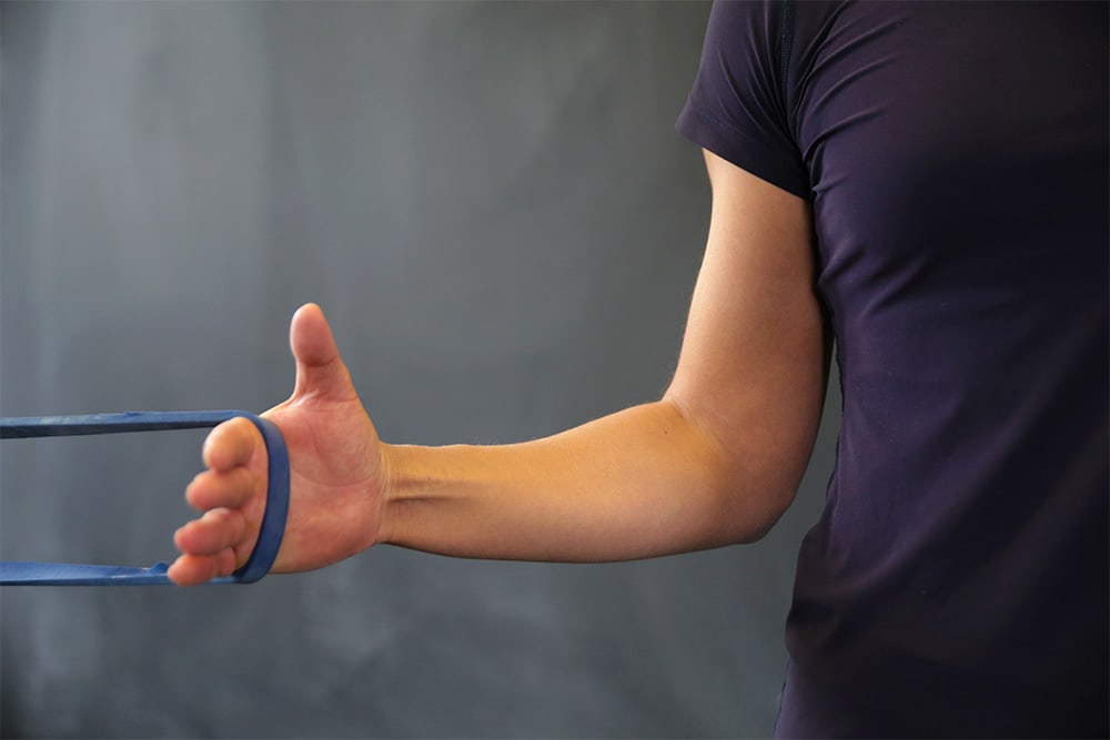 Обвяжите эспандером дверную ручку или другую опору. Встаньте рядом с резинкой. Возьмите её в руку и начните растягивать. Ваша рука согнута на 90 градусов, а локоть расположен близко к корпусу тела. Если это невозможно, уменьшите натяжение эспандера, подойдя ближе к дверной ручке. Начинайте вращать плечом в сторону дверной ручки. Затем выполните круговые движения в противоположную сторону. Сделайте 3 сета по 10-12 упражнений с каждой стороны.