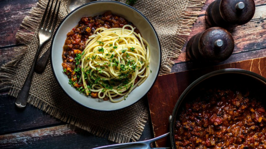 Нагрейте оливковое масло в широкой, глубокой кастрюле или сковороде. Добавьте лук, морковь и сельдерей и готовьте на медленном огне, затем добавьте чеснок, грибы, красный перец, шалфей, орегано и копченую паприку, посолите. Продолжайте готовить, часто помешивая, около 20 минут. По желанию добавьте красное вино и помешивайте в течение минуты, чтобы оно испарилось. Положите в кастрюлю консервированные помидоры, овощной бульон, чечевицу, жидкий дым и сахар, добавьте еще немного соли и перца. Дайте закипеть и продолжайте готовить на медленном огне в течение 45-60 минут, периодически помешивая. При необходимости добавляйте воду. Подавайте соус со спагетти и нарезанной петрушкой.