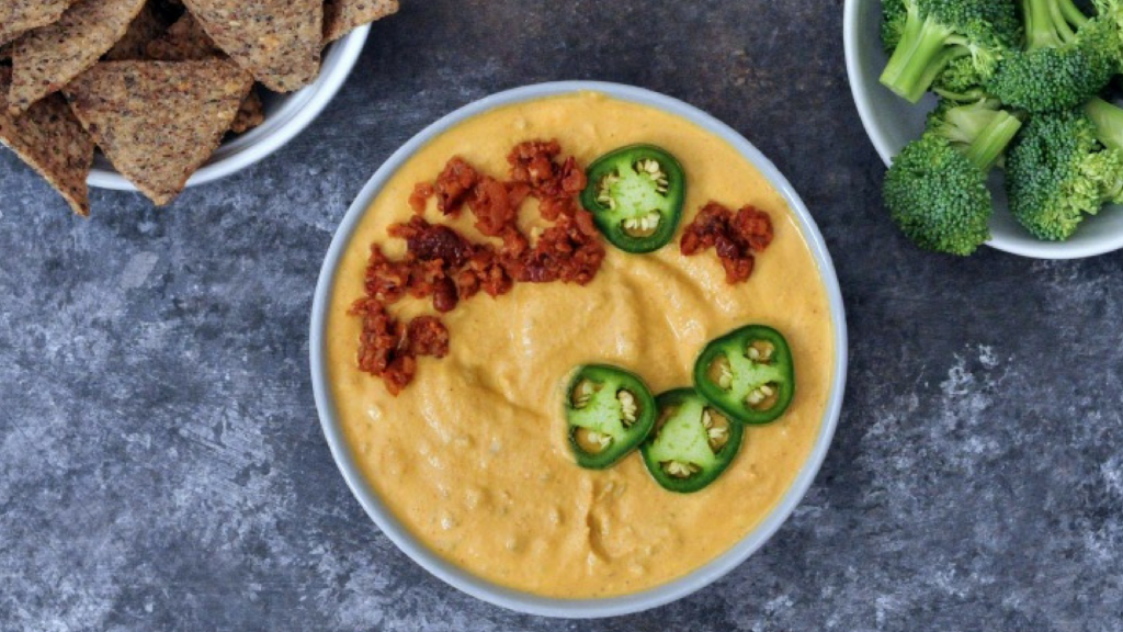 Залейте мелко нарезанную цветную капусту овощным бульоном и доведите до кипения, варите 6-8 минут до мягкости. Слейте воду и дайте остыть. В блендере соедините сок из квашеной капусты, квашеную капусту, кешью, чеснок, пищевые дрожжи, копченую паприку и морскую соль. Смешайте с максимальной скоростью до однородной консистенции. Добавьте охлажденную цветную капусту и смешайте до получения однородной массы. Если смесь слишком густая, добавьте немного воды. Положите смесь в кастрюлю и поставьте на средний огонь. Добавьте вегетарианский фарш Чоризо, оставив ложку или две для украшения. Перемешайте и готовьте несколько минут. Подавайте с дополнительным фаршем.