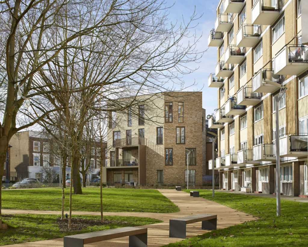 Автор проекта – студия Элисон Брукс. Этот жилой комплекс в Лондоне до современной интерпретации выглядел довольно хмуро и неблагополучно. Говорят, даже таксисты отказывались забирать людей из этого спального микрорайона. Но, Элисон Брукс постаралась вернуть району благоприятный вид, сохранив при этом строгую геометрию того времени. Застройку специально проектировали таким образом, чтобы этот микрорайон был просматриваемым и сочетался с соседними виллами и многоквартирными домами.