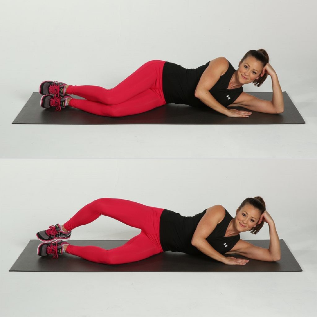 Ложитесь на бок, ноги согните в коленях, спину держите ровной. Одну руку положите на пол, а второй поддерживайте голову. Начинайте разводить и сводить колени, не размыкая стопы. Сделайте 2 подхода по 10 раз.