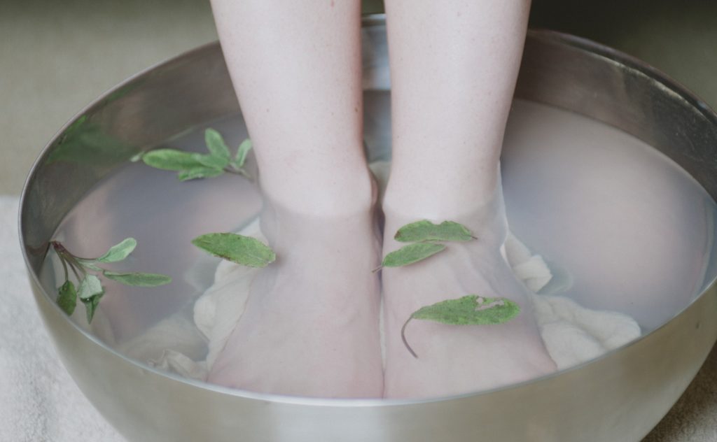 Для приготовления расслабляющей ванночки вам понадобится сульфатная соль и ромашковый чай. Добавьте в тазик с горячей водой стакан соли и 2 столовые ложки ромашки. Окуните ноги в этот раствор на 30-40 минут. Сульфатная соль снимет боль в мышцах, а настой ромашки обладает успокаивающим свойством.