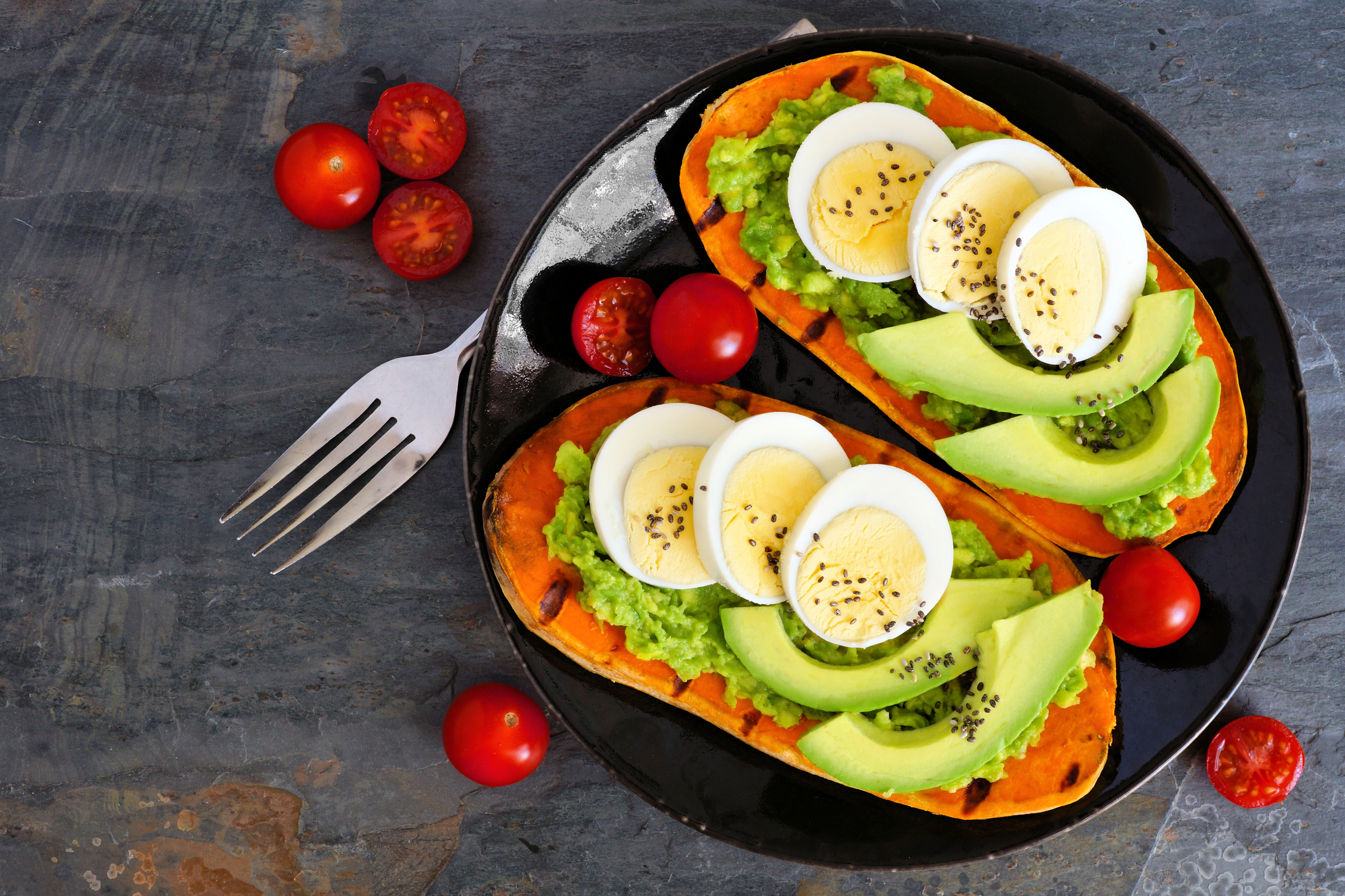 Очистите яйца, нарежьте их кусочками. Смешайте с нарезанным авокадо, добавьте травы и соус.