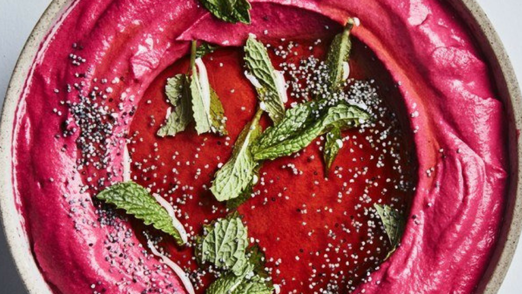 Хуммус делать как в первом рецепте «Классика». Однако помимо всего прочего в блендер добавьте нарезанную отварную свеклу. Взбейте и получите бордовый хуммус.