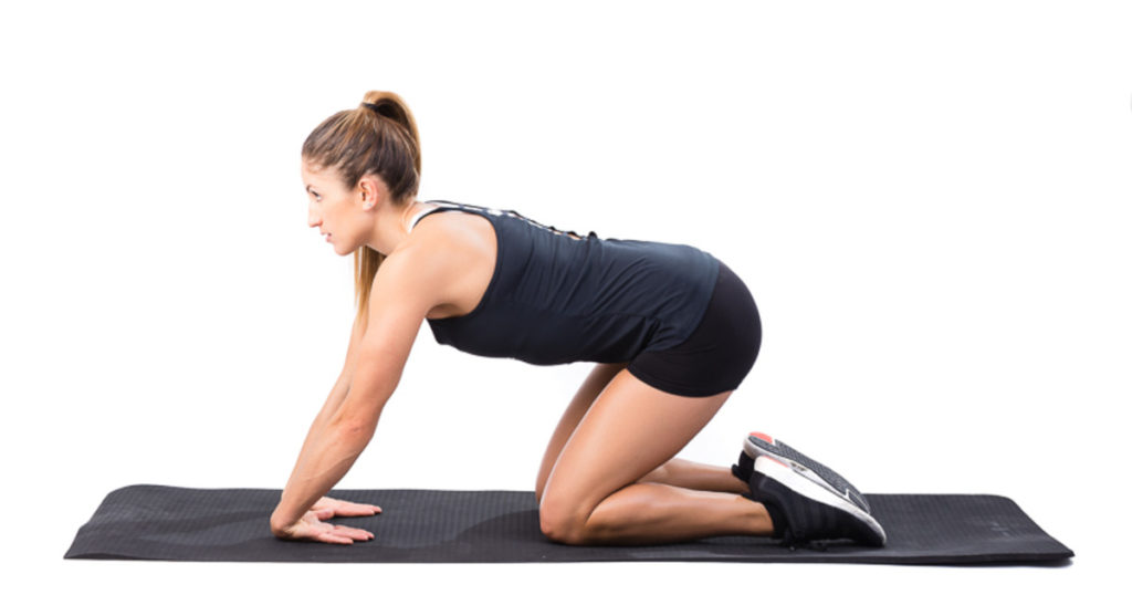 - Сядьте на пятки. Поставьте руки на пол так, чтобы ваши пальцы смотрели в сторону коленей.