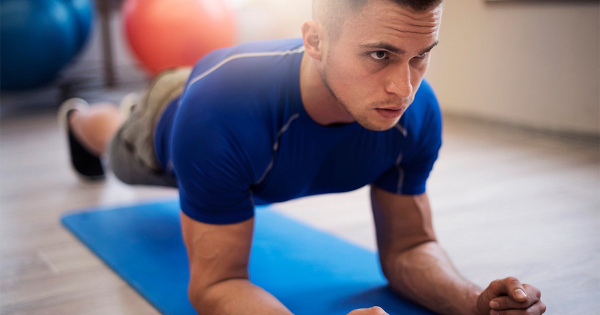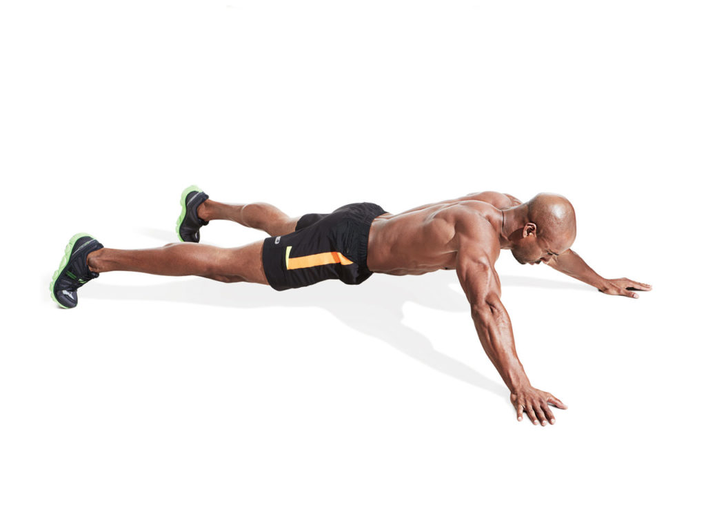 Примите упор лёжа, согните руки в локтях на 90 градусов. Ноги вместе, мышцы живота напряжены. Тело должно представлять собой прямую линию от макушки до пят. Для начала выполняйте это упражнение по 60 секунд в день. Когда вам становится так же легко, как лежать на диване, переходите к «утяжелению» планки.