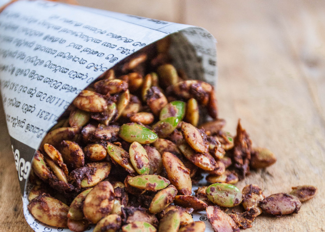 Разогреть духовку до 160 ° C. Добавьте все, кроме семян тыквы, в блендер или кухонный комбайн и сделать пасту. Смешайте семена тыквы с пастой в миске.Выложите все на противень и выпекайте минут 10. Выпекайте их, пока паста не высохнет сверху, но убедитесь, что семечки не горят.