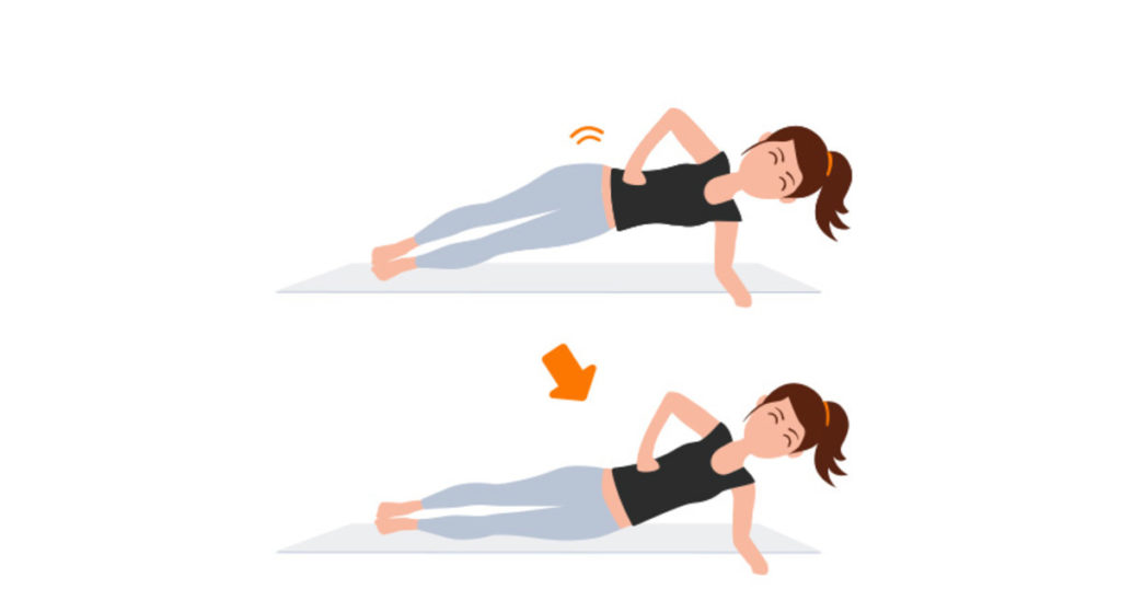 - Лягте на бок на коврик, сделав упор на локоть. Он должен находиться прямо под вашим плечом.